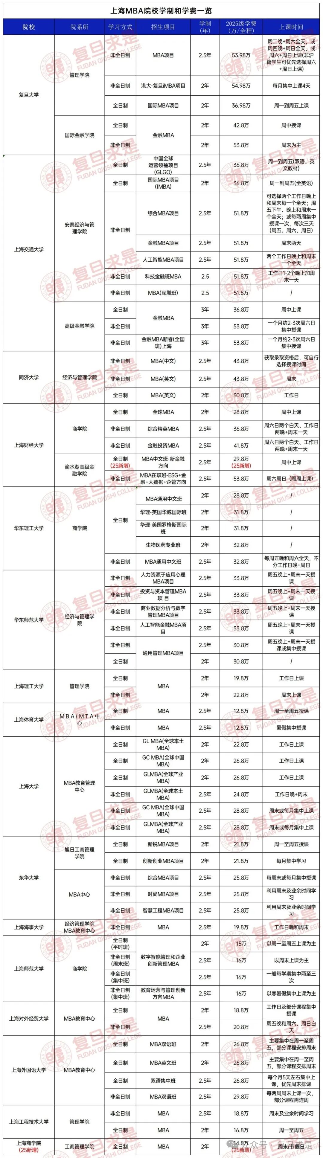 与2024年相比,2025年入学的上海地区MBA院校的学费基本没有什么太大变化,对于今年备考的考生来说是个比较好的消息。